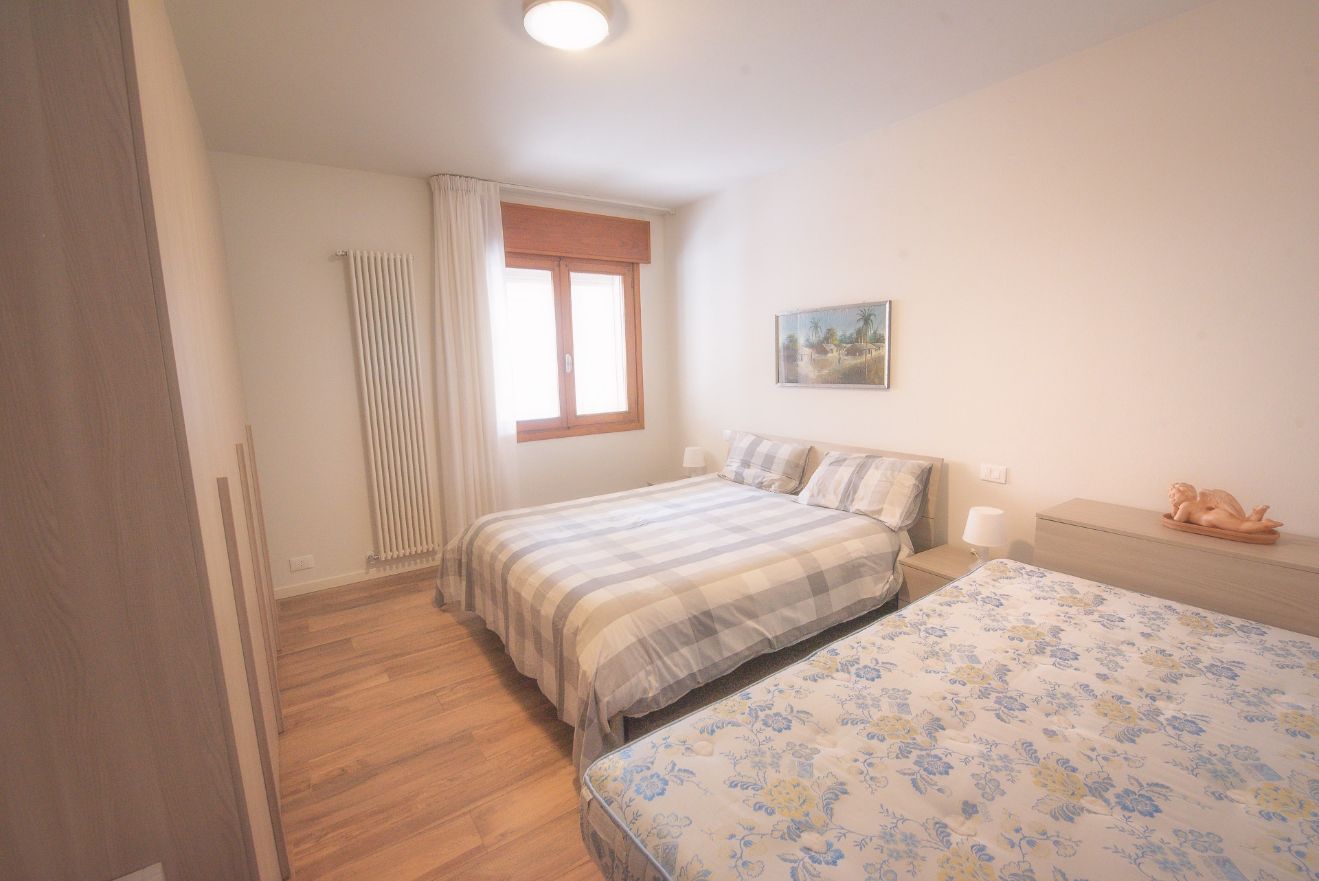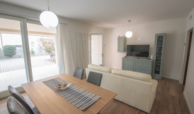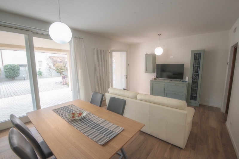 - al piano terra, un appartamento bicamere di circa 85 mq con un grande porticato. Completamente ristrutturato, si compone di una zona giorno openspace con vetrate sul portico, una camera matrimoniale, una camera doppia, un bagno e una lavanderia, oltre al ripostiglio.